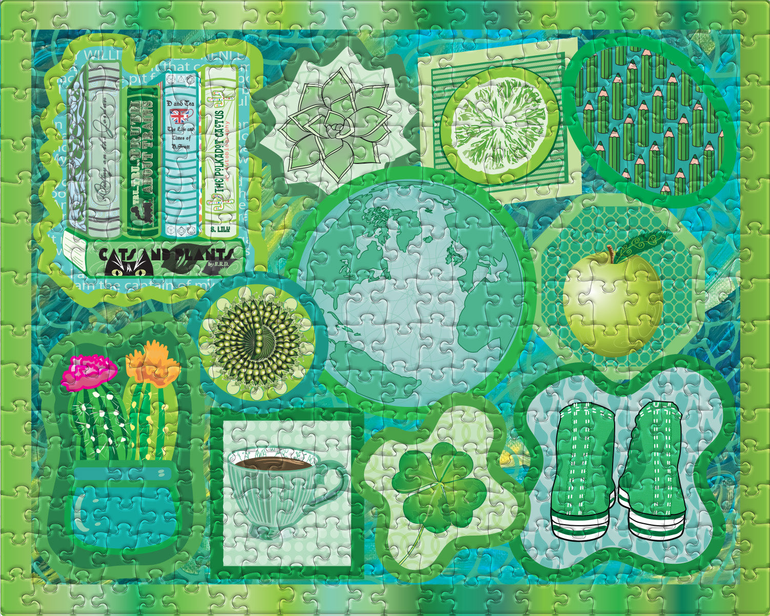 Mélange is a meeting place of contrasts, where the organic fluidity of nature blends seamlessly with the stabilizing clarity of geometry. Shades of green flow into one another, creating a rich harmony that embodies growth, balance, and unity. Within this composition lies a wide variety of forms and objects — subtle shapes and patterns intended to evoke thought, curiosity, and conversation. Each element invites the viewer to pause, to notice, and to reflect on the interconnectedness of structure and spontaneity. This piece speaks to integration — the weaving together of fluid and structured, light and depth, movement and stillness. It is an invitation to embrace wholeness, and to find within it a therapeutic sense of renewal.